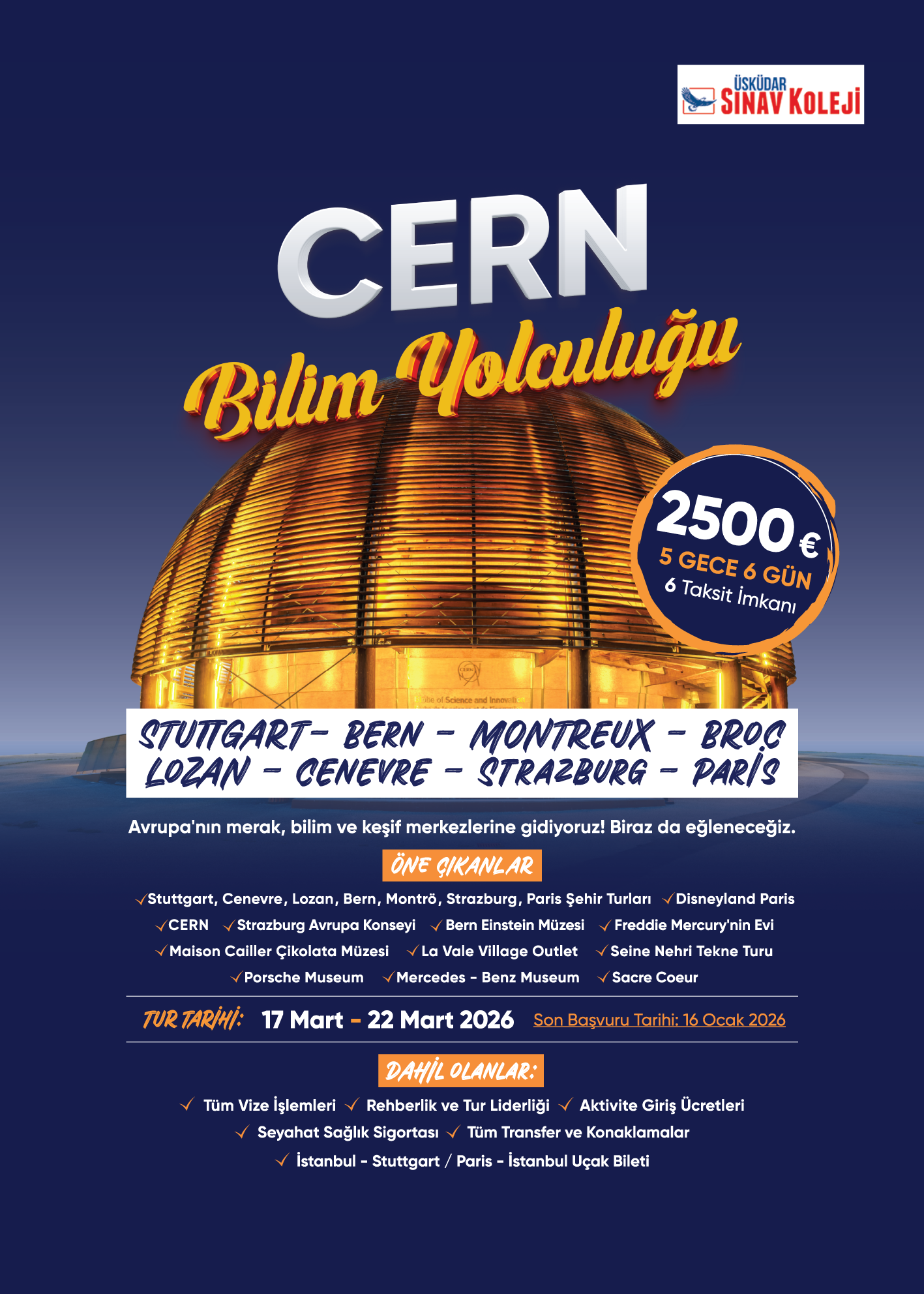 Eğitiminizi sınırların ötesine taşımak ve bilimin derinliklerine doğru unutulmaz bir keşif yolculuğuna çıkmak ister misiniz?Öğrencileriniz için özel olarak tasarlanmış bu seyahatte, Avrupa'nın bilim ve keşif merkezlerine adım atacağız. Cenevre'den Paris'e uzanan bu turda, bilimin kalbine bir yolculuk yapıyoruz. Avrupa'nın en prestijli araştırma merkezlerini keşfedecek, tarihi ve kültürel zenginliklerle dolu bir deneyim yaşayacaksınız.İsviçre ve Fransa, hem doğa güzellikleri hem de bilimsel başarılarıyla tanınan iki büyüleyici ülke. Bu turda, CERN gibi dünyaca ünlü bilim merkezlerini ziyaret edecek, Bern’de Einstein’ın izini sürecek ve Strazburg’da Avrupa’nın siyasi ve kültürel merkezi Avrupa Konseyi’ni gezeceğiz. Turumuz, sizlere bilim ve kültürle dolu benzersiz bir deneyim sunuyor.